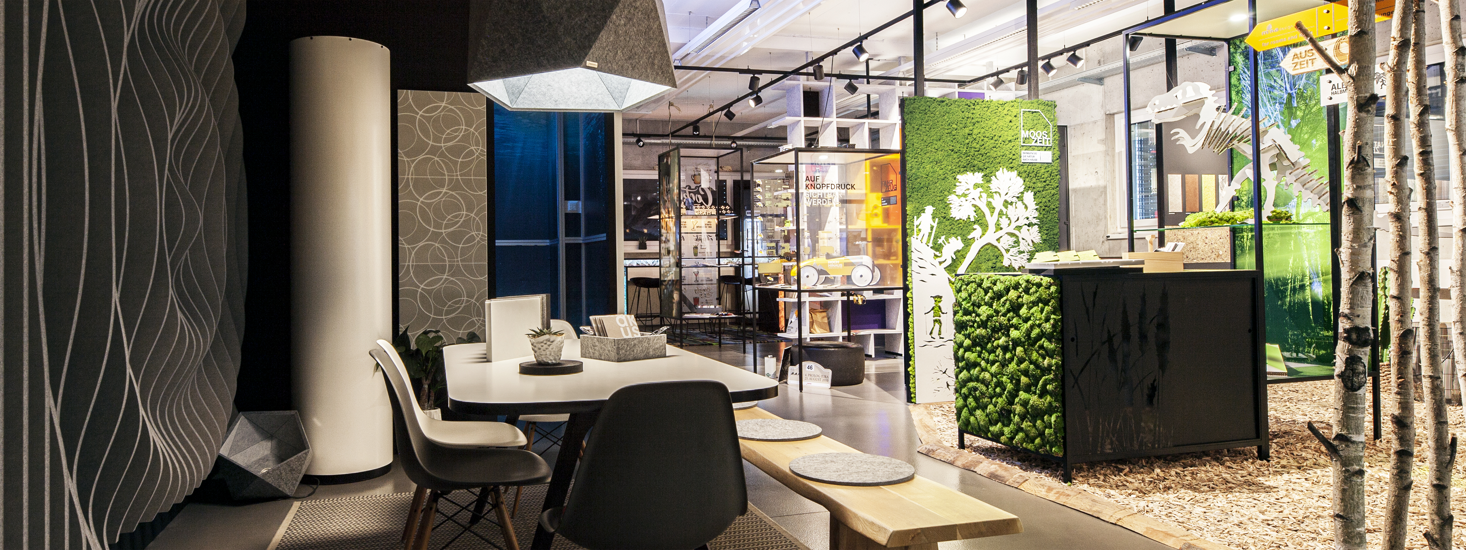 Auf über 1'500 m² präsentieren Schwab AG, Fischer Schriften AG und raumfeeling moderne Arbeitsplatzgestaltung mit Premium-Trennwandsystemen, flexiblen Raum-in-Raum-Lösungen und massgeschneiderten Akustiklösungen.