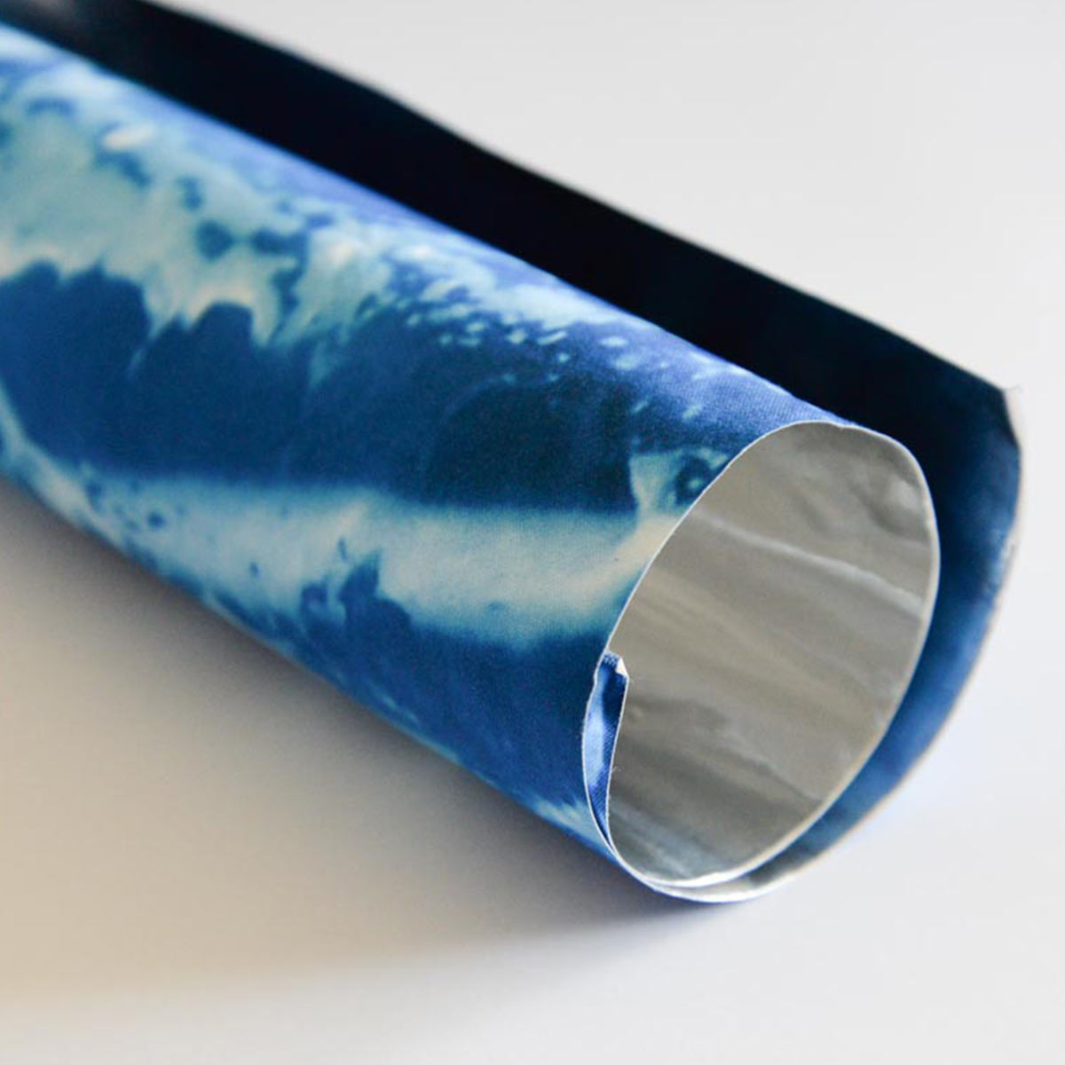 - Trägermaterial: Aluminiumfolie/bedrucktes Polyestergewebe in Wasseroptik