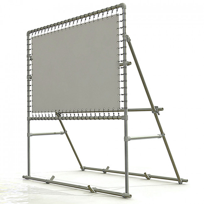Freistehender Rahmen auf Hochständer. Eine robuste Außenbannersystem aus kräftige 3 mm / Ø 48 mm Aluminium Röhre für Präsentation von PVC-Banners im Großformat.