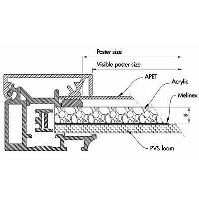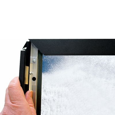 Einseitiger LED-Leuchtrahmen mit einem glänzenden Licht - für den Innen- und Außenbereich. 12 V Transformator. 33 mm Snap-Profil, schwarzlackiert mit Strukturlack. Ecken auf Gehrung. Einfach zu montieren und der Motivwechsel ist leicht. Der LED-Leuchtrahmen kann vertikal und horizontal montiert werden.