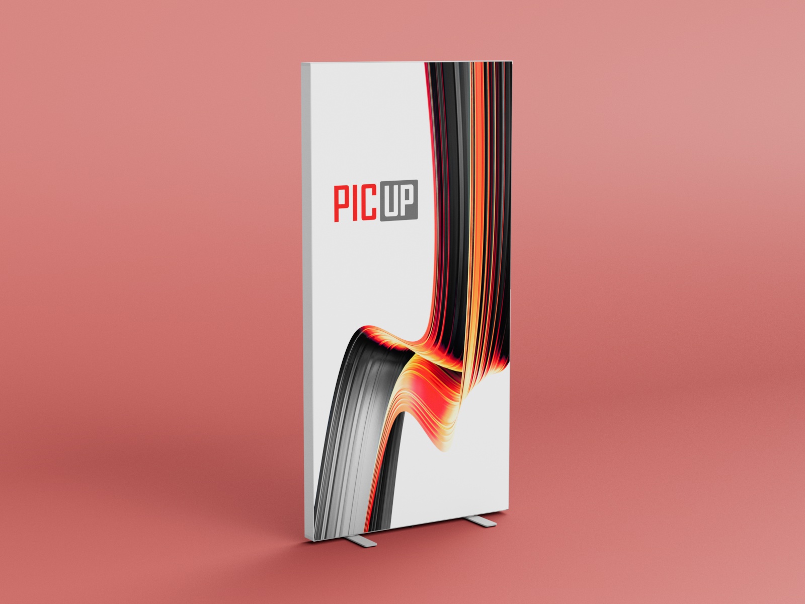 Der multifunktionale Rahmen PICUP kann als ein- oder beidseitiges Boden-Display, Raumteiler, Rückwand, für Geschäfte, Produktpräsentationen und viele andere Display-Lösungen verwendet werden.
