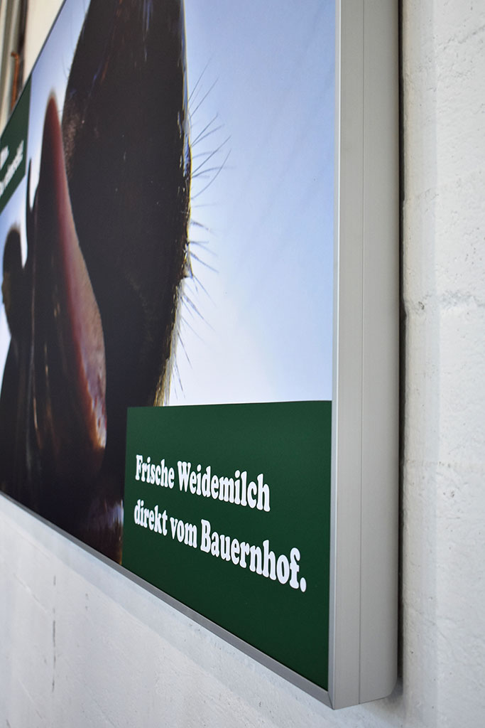 Mit einem innovativen Klappmechanismus ausgestattet, wird das Gewebe zuverlässig auch bei Wind und Wetter im Profilkanal gehalten und eine hochwertige Rahmenoptik erzielt. Trotzdem können Sie Ihre Motive jederzeit ohne Spezialwerkzeug wechseln und wiederverwenden.