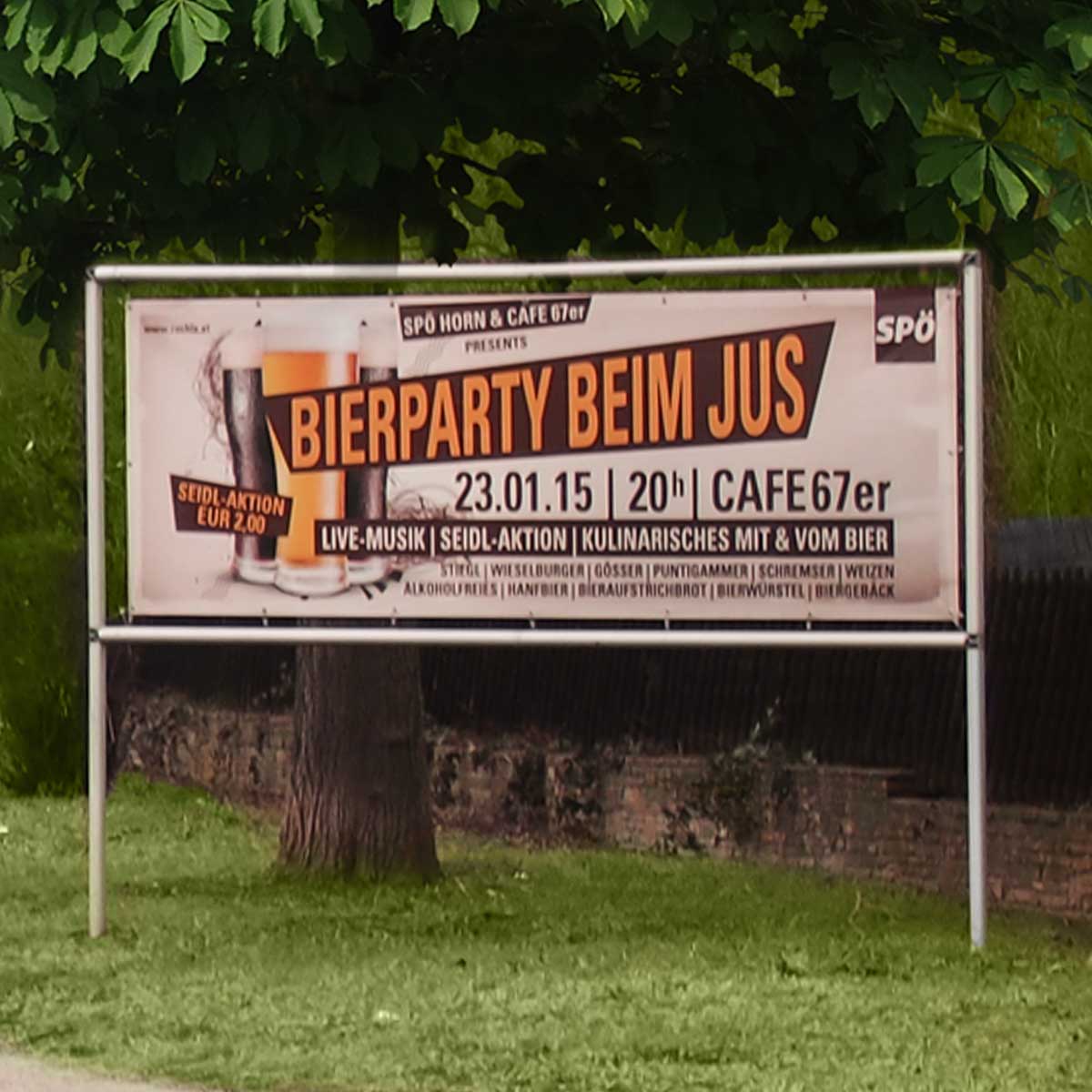 Der Klassiker unter den Werbebanner . Durch eine Gewebeverstärkung ist das Werbebanner sehr reißfest und witterungsbeständig. Dieses Werbebanner eignet sich sehr gut für Werbung im Außenbereich, zudem ist das Planenmaterial B1-zertifiziert und daher schwer entflammbar und selbstlöschend. Der Aufdruck erfolgt mit UV-beständigen Tinten, so dass ein Ausbleichen verhindert wird.