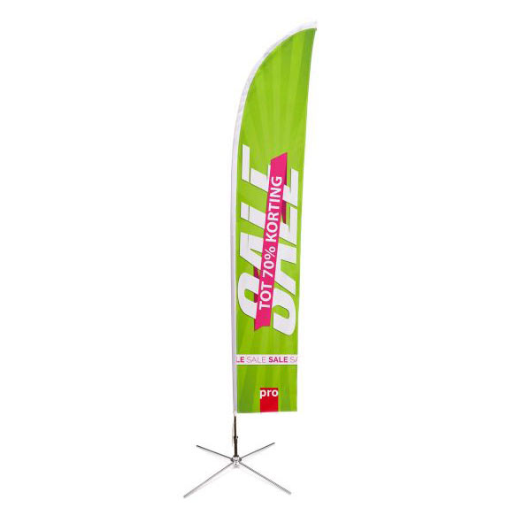Unsere Straightflag ist der ideale Blickfang für Messen, Geschäfte, Events und Märkte. Einfach aufzustellen, wetterfest und erschwinglich – perfekt für den Innen- und Außenbereich und eine professionelle Präsentation Ihrer Marke.